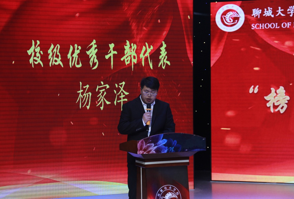 校级优秀学生干部代表杨家泽说:“要当好学生干部首先要当好学生,综合素质好的学生,要有一份责任感,要有实干精神。”向同学们充分表达了身为学生干部对自身的严格要求和以身作则的精神。