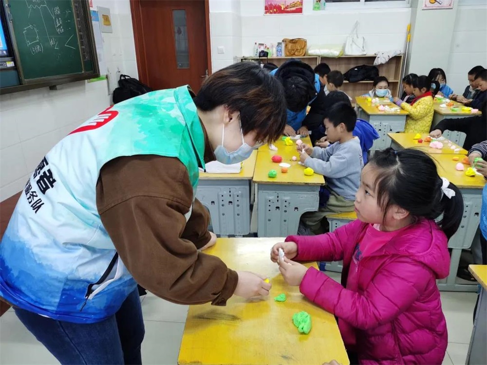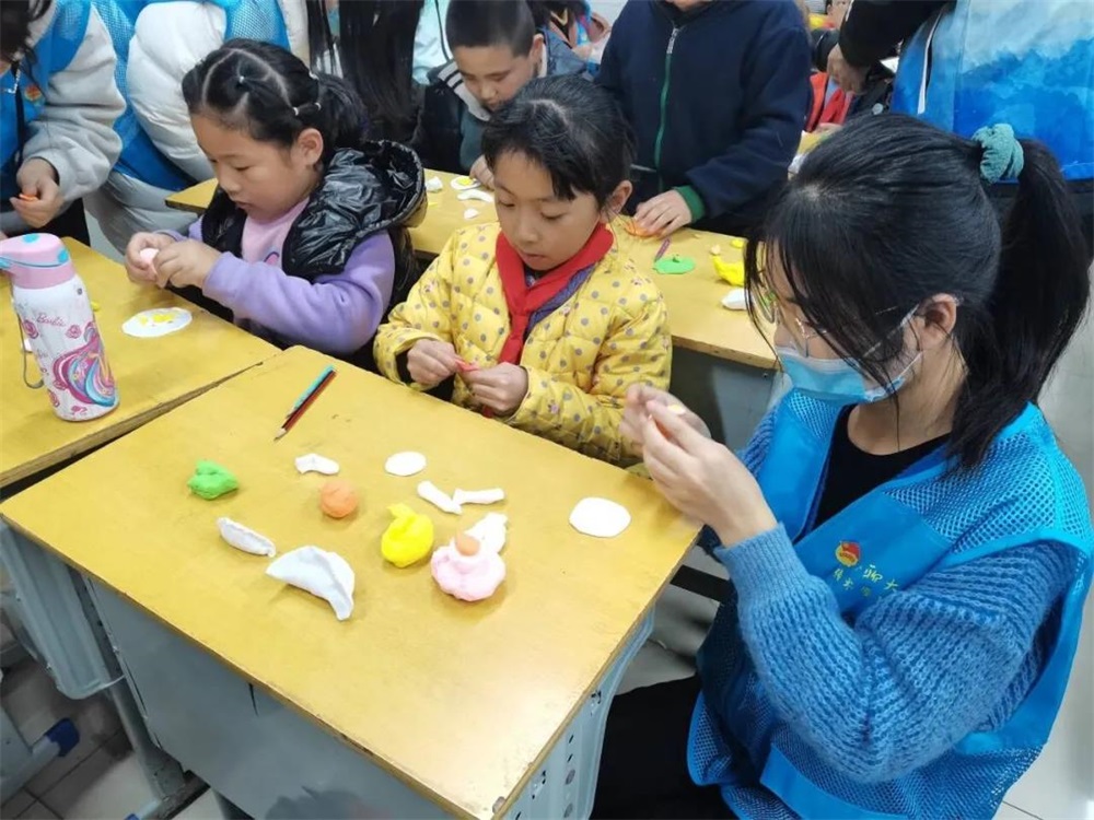 青年志愿者总队以及光影之翼服务队志愿者一行来到红旗小学延时课课堂,结合立冬节气,带领同学们一起学习节气、习俗知识,制作太空泥手工作品。