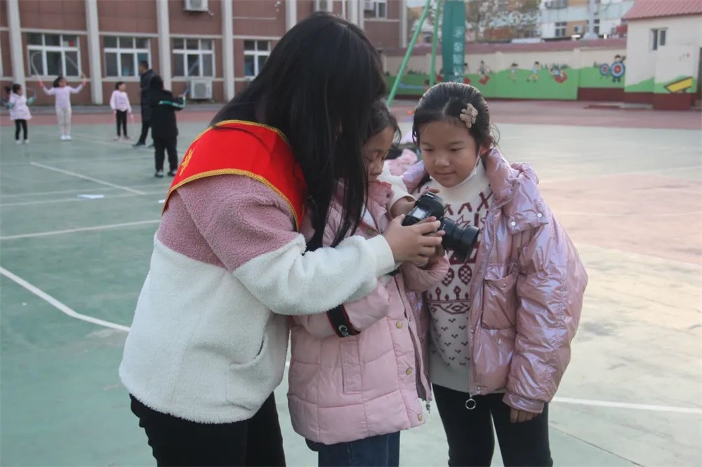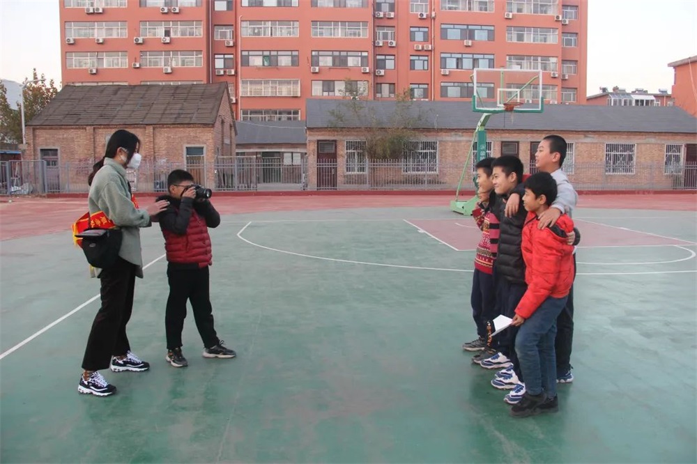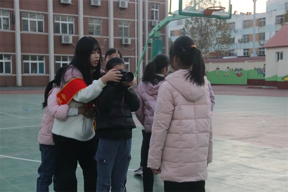 同学们上课听讲认真,表现活跃,踊跃回答团队成员提出的问题,再次巩固了拍摄要点。在理论知识掌握之后,光影助力成长团队全体队员带领同学们前往操场进行拍摄实践,同学们在团队成员的引导下根据所分小组有序使用摄像机拍摄。