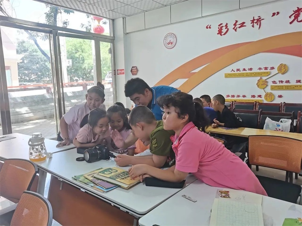 “我刚才注意到小朋友们动手尝试操作相机的时候眼睛突然亮了一下,那一瞬间,我突然感受到摄影艺术给小朋友们带来的惊喜,感受到我们做志愿服务工作的意义。今天的活动以寓教于乐的方式开展,非常吸引小朋友们,通过短短从一节兴趣小课,感觉好像打开了社区小朋友们认识、了解影视艺术的一扇窗户。”“红色领航”社会实践服务队队员房阁说道。