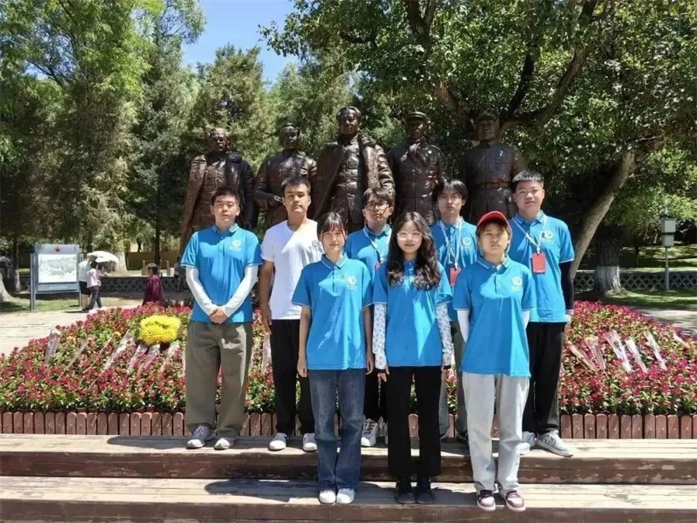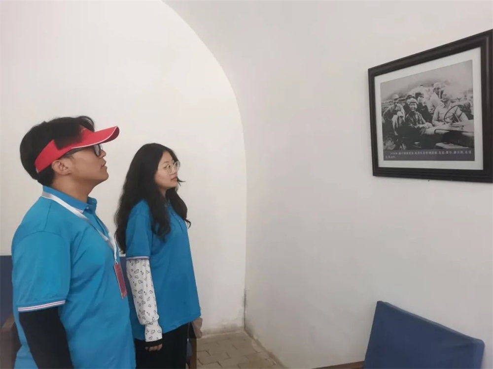 沿着园区道路,实践队员参观了毛泽东、周恩来等老一辈革命家的旧居,其中,陈列的旧照片、革命先辈们曾使用的生活物品等,再现了革命先辈们在艰苦的环境下商议决策的画面,体现了革命先辈们在投身解放事业时不畏艰辛,一心为人民奉献的决心和信念。参观完毕后,实践队员在五大书记铜像前列队,敬献花篮。