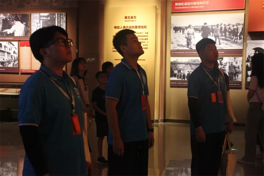 延安革命纪念馆记录了中共中央以延安为中心,在陕北领导中国革命长达十三年的革命历史,以毛泽东同志为代表的老一辈革命家在延安运筹帷幄,为中国革命做出了一系列重要决策。展馆分为红军长征的落脚点、抗日战争的政治指导中心、新民主主义的模范试验区等多个单元。展馆中栩栩如生的雕塑、惟妙惟肖的画作成为历史映照现实的桥梁;一段段详实的文字记录,一幅幅珍贵的历史照片,一幕幕生动的感人场景,使革命精神跨越时空与观众对话。参观过程中,队员们切实感受到波澜壮阔的革命岁月、革命先辈的初心使命、永放光芒的延安精神;队员们多次驻足思考、拍照记录,交流学习感悟。