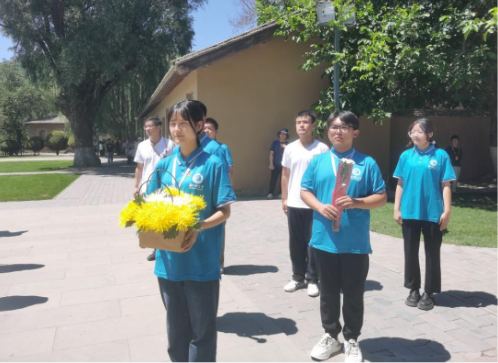 7月16日,实践成员前往枣园革命旧址参观毛泽东、周恩来等老一辈革命家的旧居,其中,陈列的旧照片、革命先辈们曾使用的生活物品等,再现了革命先辈们在艰苦的环境下商议决策的画面,体现了革命先辈们在投身解放事业时不畏艰辛,一心为人民奉献的决心和信念。参观完毕后,实践队员在五大书记铜像前列队,敬献花篮。