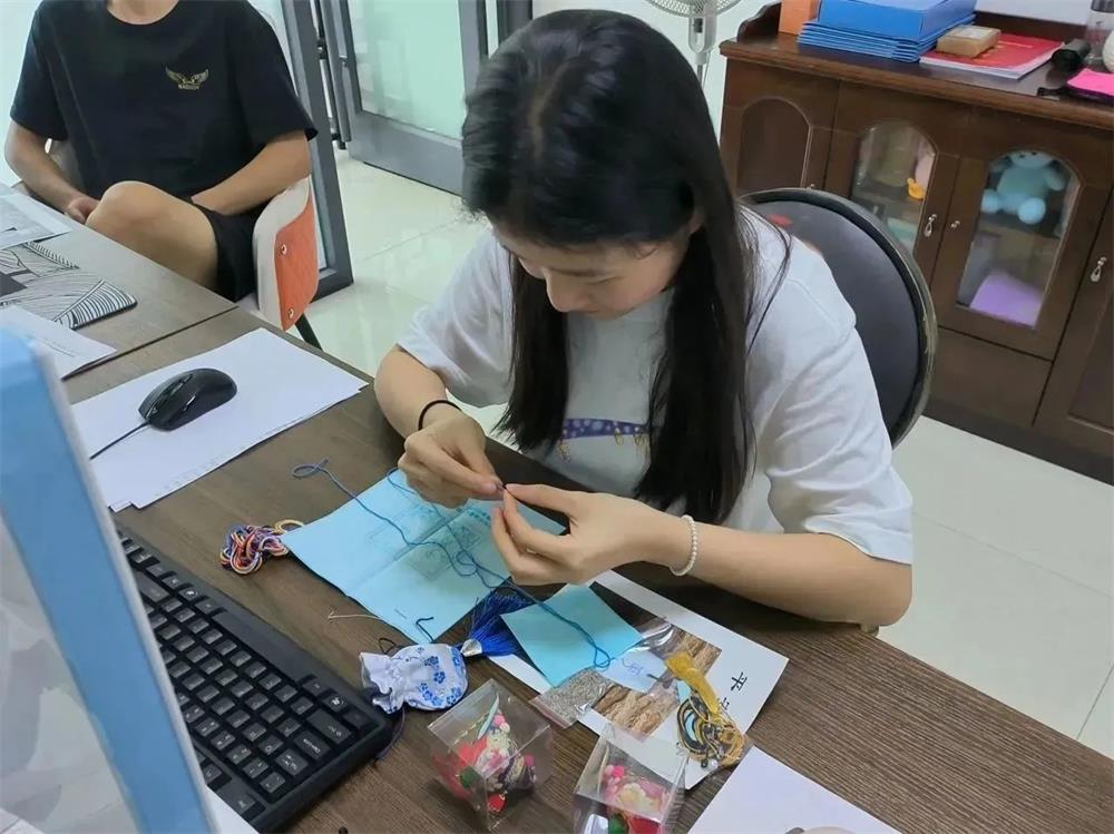 乐道拾遗,匠心筑遗。实践进入后期教育宣传环节,队员们以不同年龄段的群众作为宣传载体,发扬并推广刺绣文化。服务队成员前往乡村小学开展了一堂别开生面的乡间课堂,沿着历史脉络,依托刺绣文化的传承与发展这一话题深入浅出地向大家传递党关于保护刺绣在内的非物质文化遗产的重要指示,启发他们在日常生活中发现美、创造美、传承美。有部分成员来到了老年大学,针对老年人开展了一次“刺绣文化”体验课堂,成员们分发了刺绣材料包并现场教学指导刺绣技法,老人们上手感受刺绣的魅力。有位曾从事刺绣工作的奶奶说道:“我从事刺绣行业已经有数十年了,刺绣这一门老手艺在现如今的发展真是越发不景气,多亏你们这些年轻人继续传承我们老祖宗留下来的手艺,刺绣的未来也一定会越来越好。”
