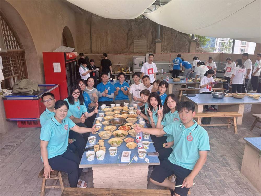 “红色启航”社会实践服务队与临沂大学“寻访红色足迹,赓续红色血脉”实践教育团共同制作晚餐。过程中,两校成员分工合作、协同互助,在实践中深刻感受“自力更生、艰苦奋斗”的精神。