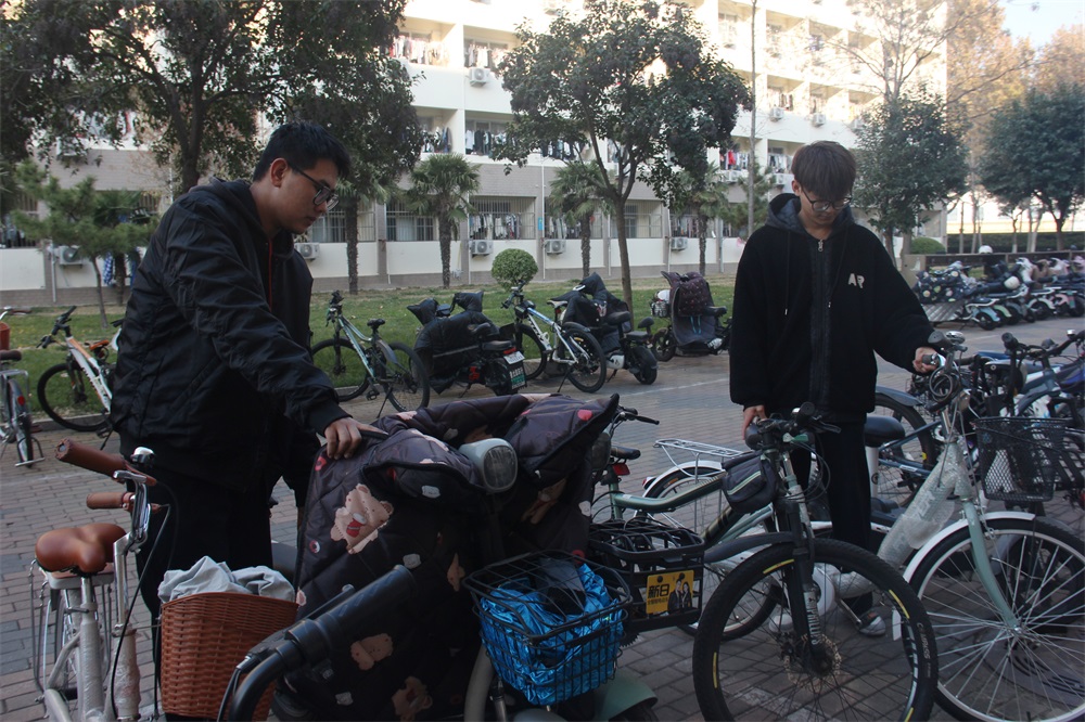 遵守停车规范,争创文明校园。活动伊始,志愿者们在楼前集合,活动负责人首先向志愿者们讲解摆放车辆的注意事项,随后志愿者们合理分工,按区域依次摆放车辆,将乱停乱放的自行车、电动车以同一水平线为基准整齐摆放在白线内,并在车辆中间留出合理的空间,有助于学生们停车、取车。遇到停车的同学时,志愿者们积极引导同学按照规范停放车辆,将停靠歪斜的车辆摆正。