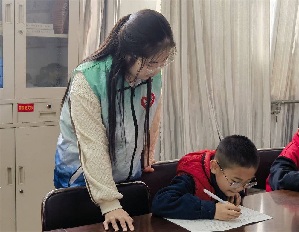 青春志愿行,奉献新时代。活动前期,服务队成员拟定好活动计划,并于活动当天提前抵达社区教室进行现场布置,迎接小朋友们的到来。课业辅导期间,服务队成员耐心倾听小朋友们的疑难问题,用生动有趣的讲解方式,循序渐进地引导他们得出正确答案,培养他们独立思考的能力。课间休息期间,服务队成员为小朋友们精心策划了一系列培养专注力的小游戏,并组织了乒乓球、五子棋、象棋等精彩比赛。这些课间活动锻炼并提升了小朋友们的观察力、记忆力和逻辑思维能力,营造了积极向上的氛围。
