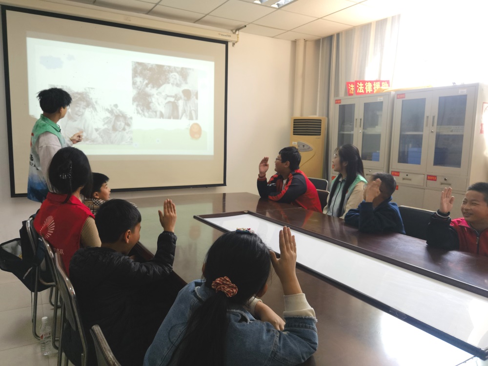 与此同时,服务队成员们还组织开展了红色文化故事分享会,志愿者们声情并茂地向小朋友们讲述红色故事,小朋友们聚精会神地观看红色视频,缅怀红色历史。志愿者们还对他们进行相关知识提问,进一步加深了小朋友们对红色文化的理解和记忆。此次活动不仅有助于培养小学生的爱国情怀和思想品德,还增强了他们的社会责任意识,帮助他们更好地了解历史的同时,激发了他们的想象力和创造力。