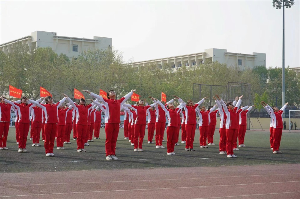 绿茵场上展风采,青春热血谱华章。赛前,同学们满怀热情,充分利用课余时间进行系统练习、重点突破动作要领,力求达到动作精准、优美,每一次的排练都充满汗水与欢笑。比赛现场,队员们身着统一的运动服,整齐有序地入场,他们精神抖擞,斗志昂扬,站到指定位置等待比赛开始。随着激昂的音乐旋律响起,同学们迈着矫健的步伐,喊着响亮的口号,昂首挺胸地走到比赛的指定位置。广播体操队员们每一个动作都精准到位,每一次跳跃都充满力量,他们动作舒展优美,节拍有力分明,姿势优美大方,饱含激情与活力,将体操的韵律美与力量美完美融合。