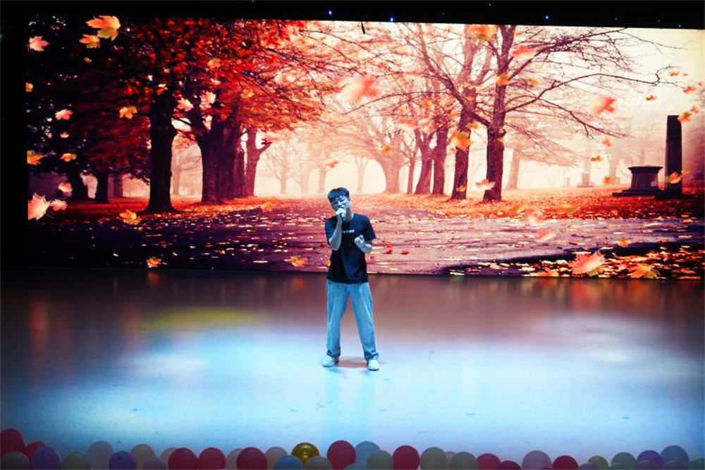 邵宇轩同学带来的《意外》以其独特的嗓音将歌曲中的每一个字、每一个音符都诠释得淋漓尽致,感染了现场的每一位观众。当熟悉的旋律响起,观众们仿佛被带入到一个充满情感共鸣的空间,深陷其中,久久不能忘怀。