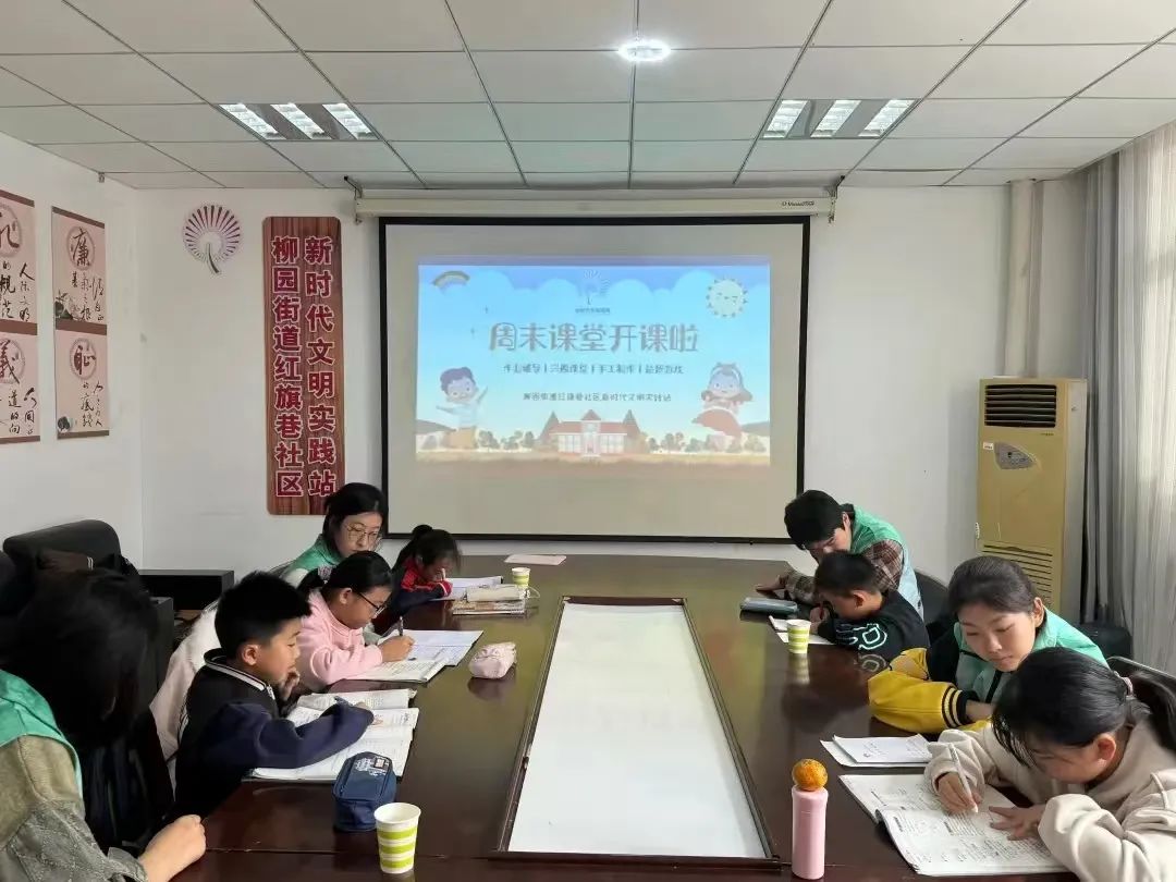志愿传递温暖,文化点亮童心。活动前期,服务队成员提前到达社区教室,交流讨论活动的主要内容和注意事项,确保活动安全有序进行,待小朋友到齐后,活动正式开始。活动期间,服务队成员耐心解答小朋友们的疑难问题,指出作业中的错误并循序渐进地引导他们得出正确答案,加深他们对知识点的掌握程度,进一步培养小朋友的自主思考能力。