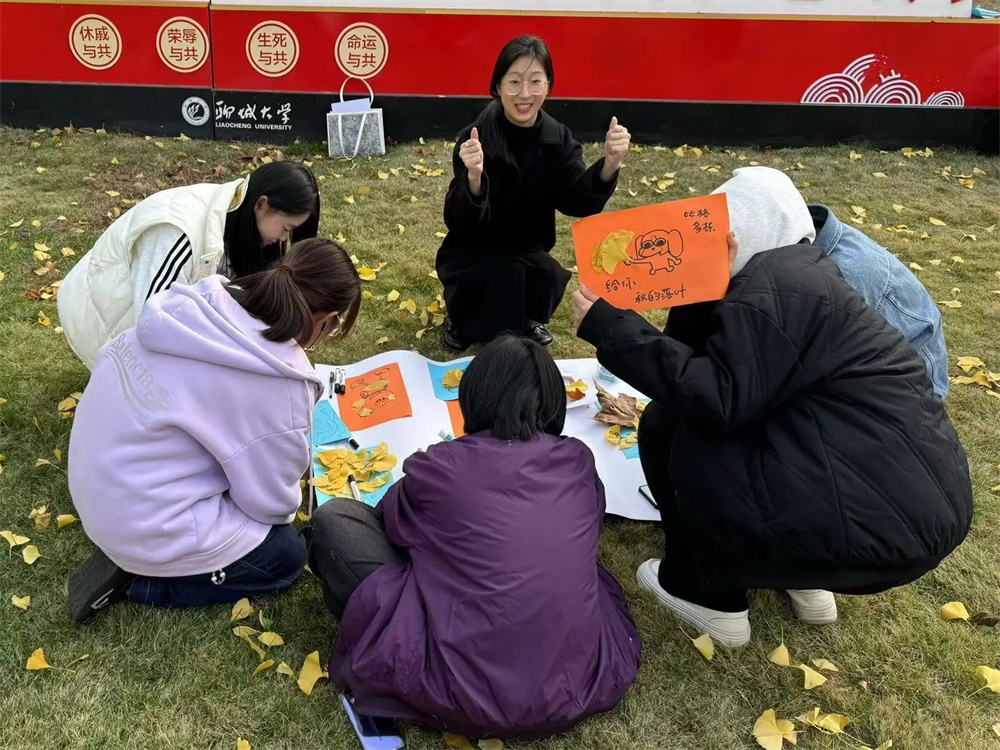 共谱协作乐章,汇聚同心合力。活动伊始,高林瑀向在场的学生介绍了此次活动的主要目的,并紧扣团队协作主题深入论述了其重要性。随后,活动进入游戏互动环节,高林瑀将学生们划分为若干小组,以采集落叶作画的独特形式,着力培养他们的团队协作能力。各小组同学分工明确、配合默契,在齐心协作中顺利完成作品。