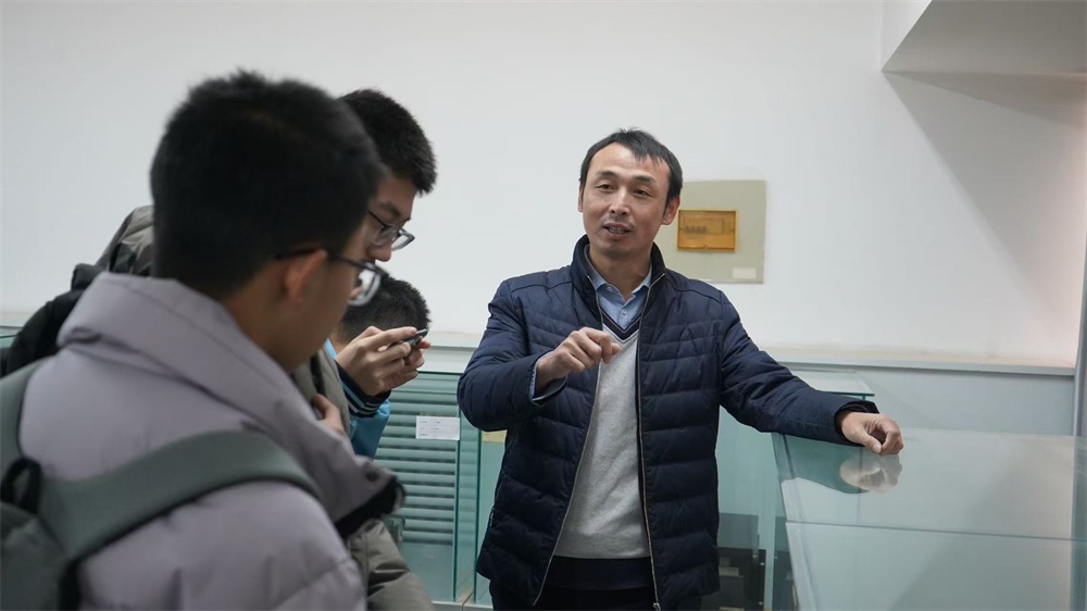 追光逐影,“媒”力无限。活动中,聊城三中的学生们从综合实验楼十楼出发,依次参观了教育技术、数字媒体和广播电视编导三个专业的实验室。郝翰率先引导学生们走进数字媒体艺术专业的实验室,如线拍实验室、无纸动画实验室等,使学生们真切体会到前沿科技与艺术创作的深度交融。接着,教育技术系副主任于连民引领学生们感受了创客实验室的独特魅力,副院长秦建波则为学生们讲解了不同年代投影仪的使用技巧,并详细阐述教学设备的发展沿革。