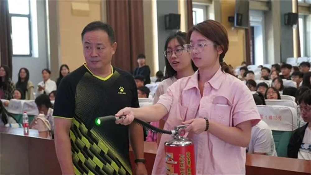 消防安全铭心记,校园平安共践行。活动伊始,保卫处消防科马飞以一起触目惊心的火灾案例为切入点,围绕火灾隐患的预防与措施、消防安全基本常识等方面向同学们详细讲解了消防安全知识。随后,马飞现场又演示了灭火器、消火栓等器材的使用方法,并有序组织同学们进行实操演练。同学们纷纷表示,通过此次主题讲座,不仅学到了切实可用的消防安全知识,更深刻认识到消防安全的重要性。
