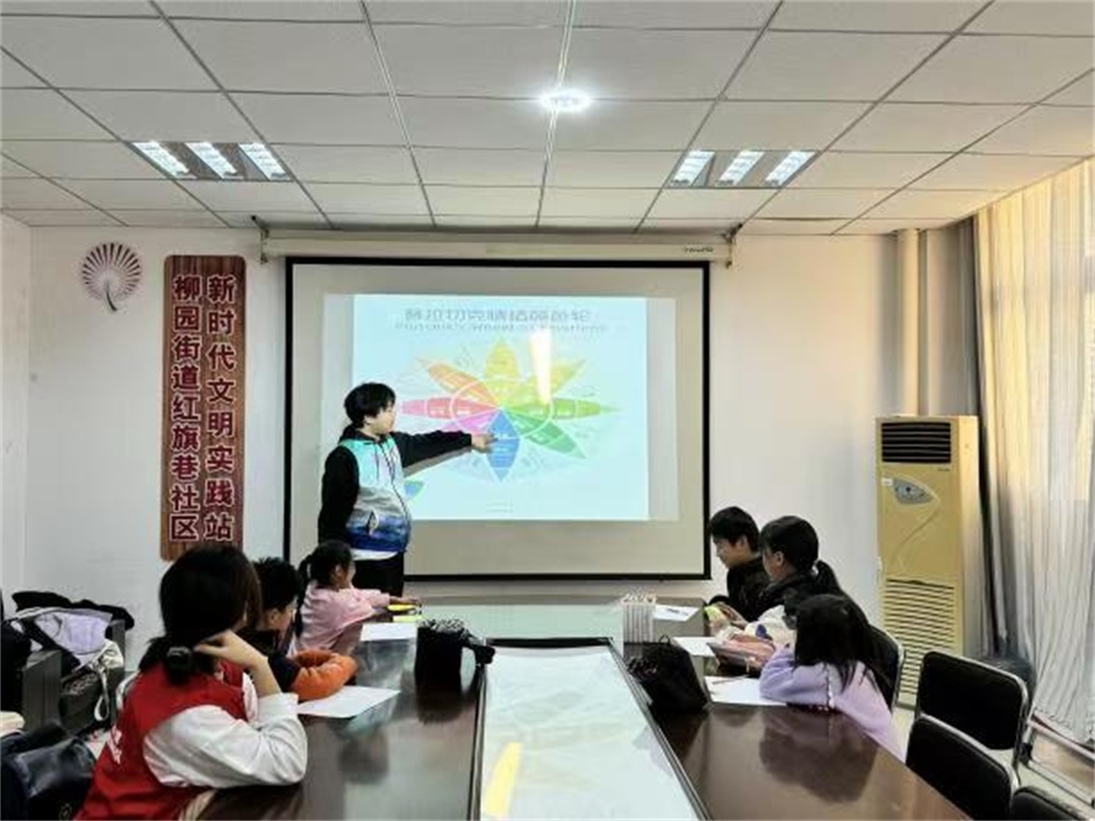 此外,志愿者们还组织了一场以“颜色与图案在情绪表达中的应用”为主题的手工小课堂活动。他们通过深入浅出的讲解,引导小朋友们探索色彩与图案背后隐藏的情感寓意,鼓励小朋友们运用绘画创作的方式,将内心的情绪转化为具体的图像表达,帮助他们在趣味手工中提升艺术感知与情绪表达能力。