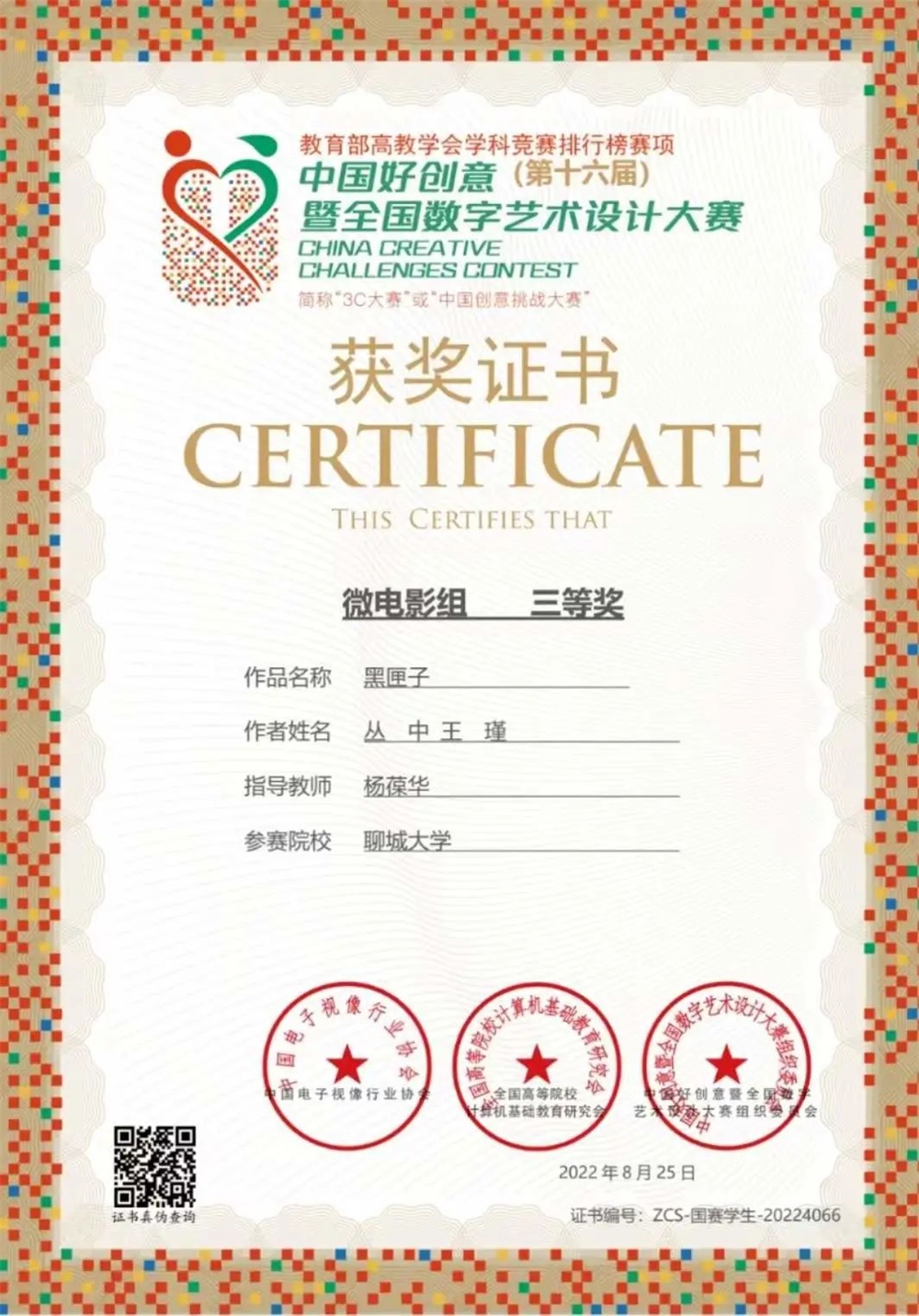 学子在第十六届中国好创意大赛再创佳绩,学生作品荣获国赛二等奖一项、三等奖两项,共计三项。