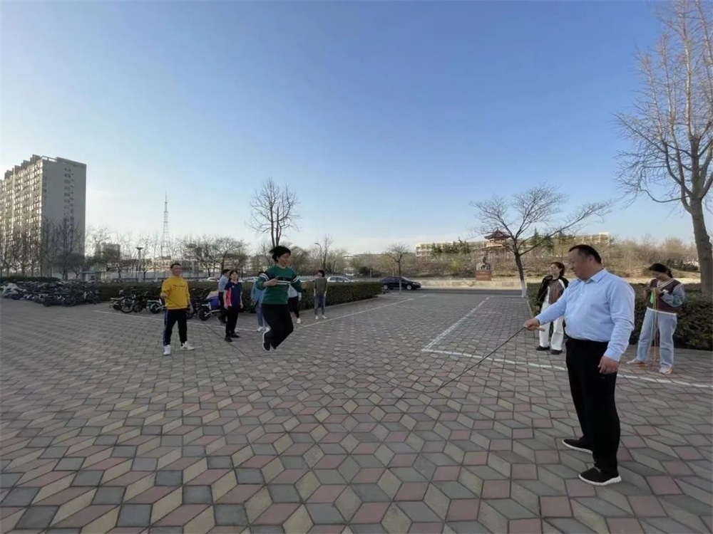 此次跳绳比赛受到了学院教职工的热烈欢迎,大家积极参与,既有年富力强的骨干教师,也有朝气蓬勃的年轻教师。比赛分为单人跳绳比赛和集体跳绳比赛两项。下午四点,参与比赛的教师齐聚11号楼前广场,开始进行赛前热身活动。