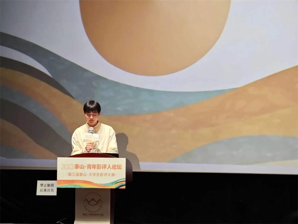 锐意进取,精益求精。杨振树立科研意识,积极探索大学生创新创业项目,他以专业知识为依托,多次参与电影评论写作并积极申报相关竞赛,于山东人民出版社出版的《影评范文精选》中发表文章2篇,于《泰山影话》中收录电影评论文章2篇。在本学年还获邀参加“泰山·青年影评人论坛”,被聘请为“青年评审”并在论坛上作为优秀青年影评学生嘉宾发言,将学无止境之心作为不断学习的源动力。
