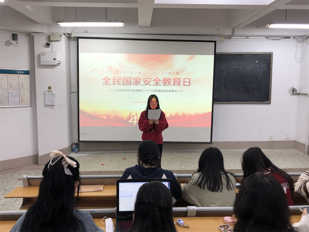 部分同学配合着自己制作的PPT,生动形象的诠释着国家安全层面的理念,加强国家安全文化建设。随着比赛过半,同学们紧张的情绪得以放松,心理压力得到缓解。通过讲解对国家安全的认识,有利于促进同学们的情感表达,更好的促进心灵交流,在挑战中调节心理,在演讲中洗涤心灵。