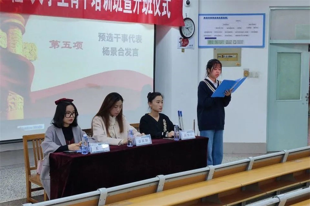 本班开班仪式的成功举办有利于增强大学生对习近平新时代中国特色社会主义思想的强烈的认同感,有助于帮助学院选拔出政治素养好、思想作风过硬的学生干部,为学生更好的进行服务工作,从而推进学院各项工作建设、迸发学院发展活力。