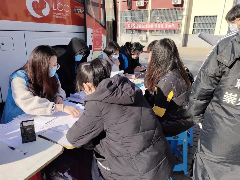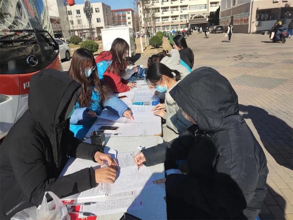 在志愿者的指引下,同学们不顾寒风前来献血,井然有序,积极配合,依次完成各项检查工作。待献血学生留观无恙后,志愿者贴心提醒献血同学要注意多休息,不能熬夜等注意事项。