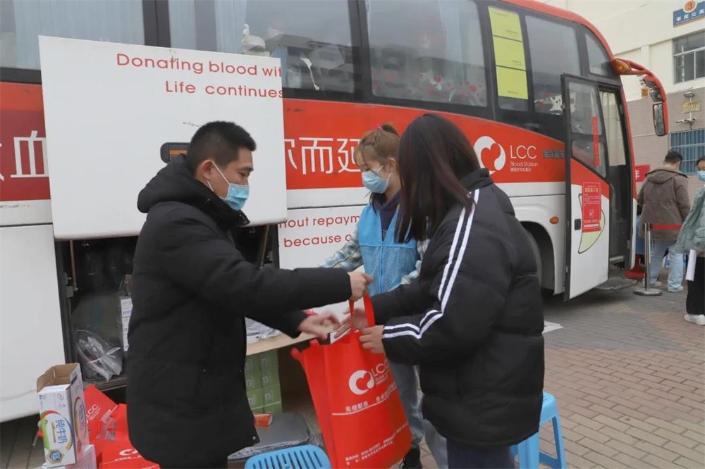 志愿者向来参加志愿献血的同学们提供了检查健康码、电子测器测量体温、询问身体情况、填表、验血、献血、留观等服务,并在等候区提供了饮用水、白糖水、牛奶、面包、红枣等食品以备不时之需。