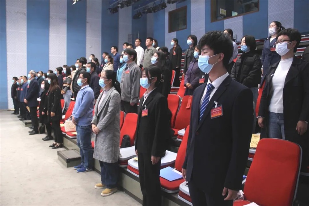 经预备会议及大会主席团第一次会议通过后,第一次全体会议在庄严的国歌声中拉开帷幕。郭峰作题为《找准定位 补齐短板 强化融合 突出特色 以“严真细快实”的工作作风开拓学院改革发展新局面》的学院工作报告。围绕2021年工作回顾、2022年主要工作任务两大板块,系统总结了学院2021年度四项代表性成果和人才队伍建设、本科教学、学位与研究生教育、科学研究与学科建设等九项工作取得的显著成绩,针对学院发展现存问题进行辨证分析。