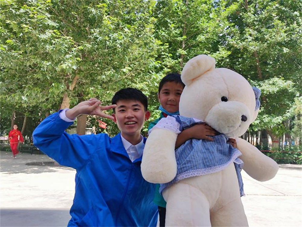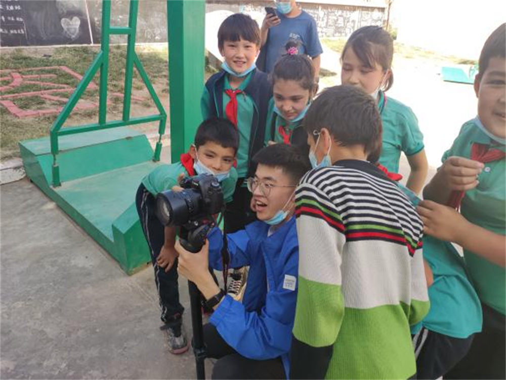 在这短短的半年时光中,我用相机记录下了许多美好的瞬间:中华人民共和国成立72周年时在沙漠中、冰川下唱响《我和我的祖国》,重阳节在敬老院与老人共跳新疆舞,志愿者日到福利院为孩子们送去暖冬物资……每当这些点滴回忆起来时,作为志愿者的成就感与幸福感就会从我的心底里油然而生。而最让我感到幸福的无疑是我的110个孩子,他们似乎总是喜欢带给你些小感动。