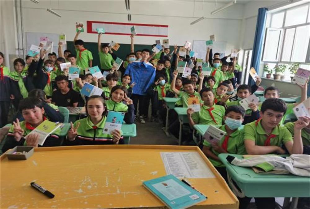 这份双向奔赴的喜欢,是一场特别的相遇。一年的时光转瞬即逝,孩子们用最洪亮的声音再一次重复了我每天都听的那句“老师你好”,然后陷入了沉寂,有些孩子眼眶已经红润最后。一节课我没有讲课,而是选择和孩子们道别,很多孩子都已经泣不成声,我努力压制住自己早已翻腾的情绪,可泪水还是不争气的流了下来,我赠给学生每人一本图书,告诉他们读书改变命运,孩子们将自己的名字签在了我的志愿者服上,这群孩子们是新疆送给我最好的礼物。