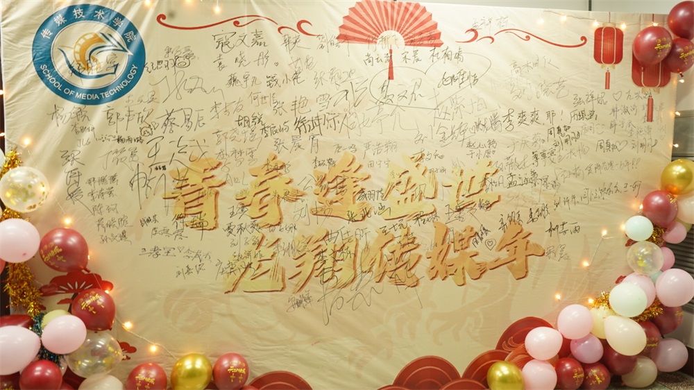 张灯结彩迎新年,齐心协力谱新篇。晚会开始前,工作人员在入口处设置了签名墙,供老师和学生们签上自己的姓名,留下对新的一年的美好期盼和祝福。