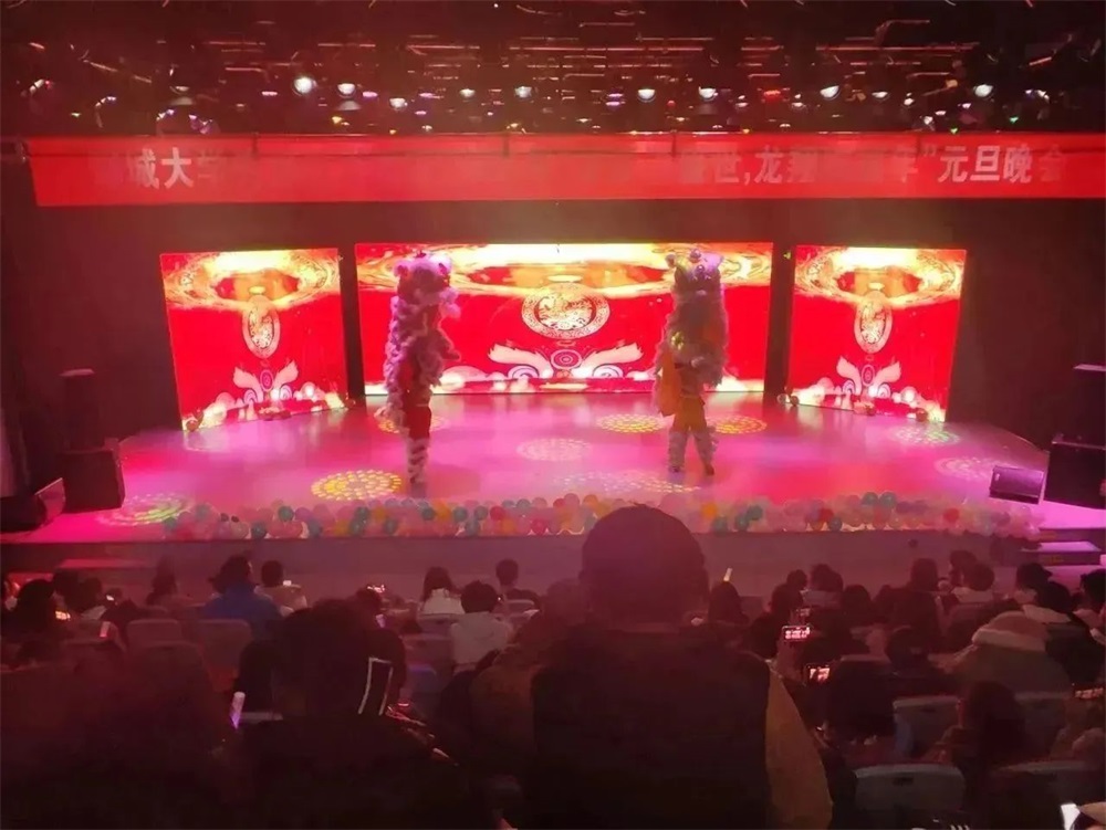 本次元旦晚会在热闹的舞狮表演中正式拉开帷幕,杨乘烨、徐正、李智臻带来的《龙腾狮舞跃青春》,瑞狮欢歌,喜气洋洋送吉祥,生动活泼的小狮子与台下观众积极互动,点燃晚会的气氛的同时,给观众送去了欢声笑语。