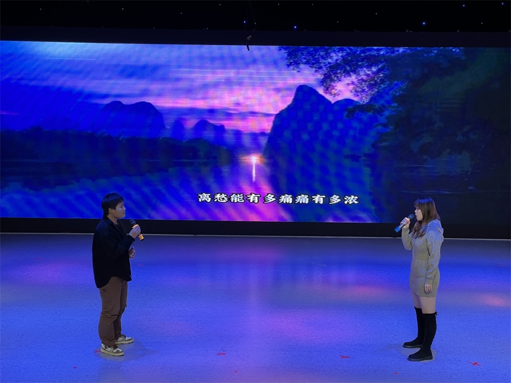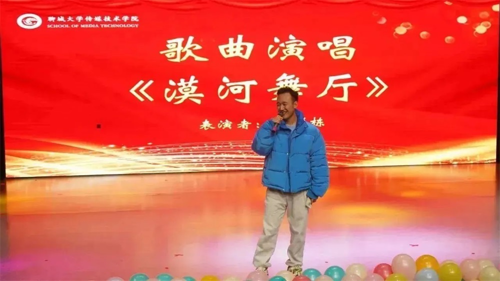 辅导员孟祥栋作为晚会的惊喜嘉宾,为大家带来了一首《漠河舞厅》,精彩的表演让学生们看到了老师充满青春活力的独特一面。