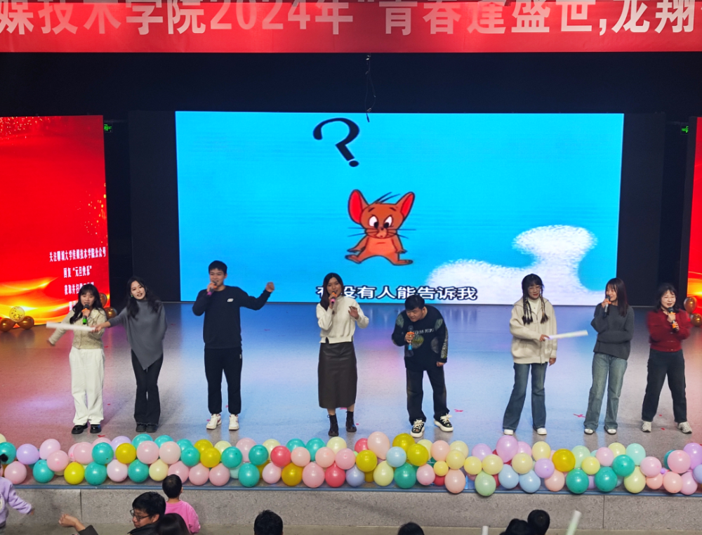 “青春逢盛世,龙翔传媒年”2024年元旦晚会于综合实验楼11楼演播厅举办。特邀各学院老师和学生欢聚于此,共庆佳节。