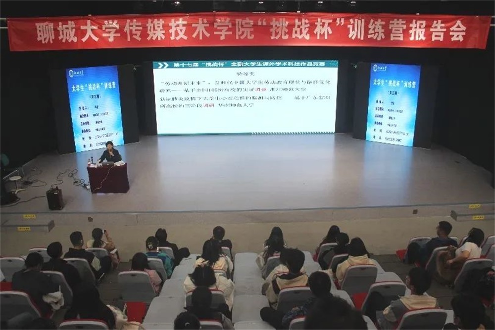于综合实验楼11楼演播厅举办了“青春新动能,挑战创未来”挑战杯训练营报告会活动。报告会由蜜桃直播