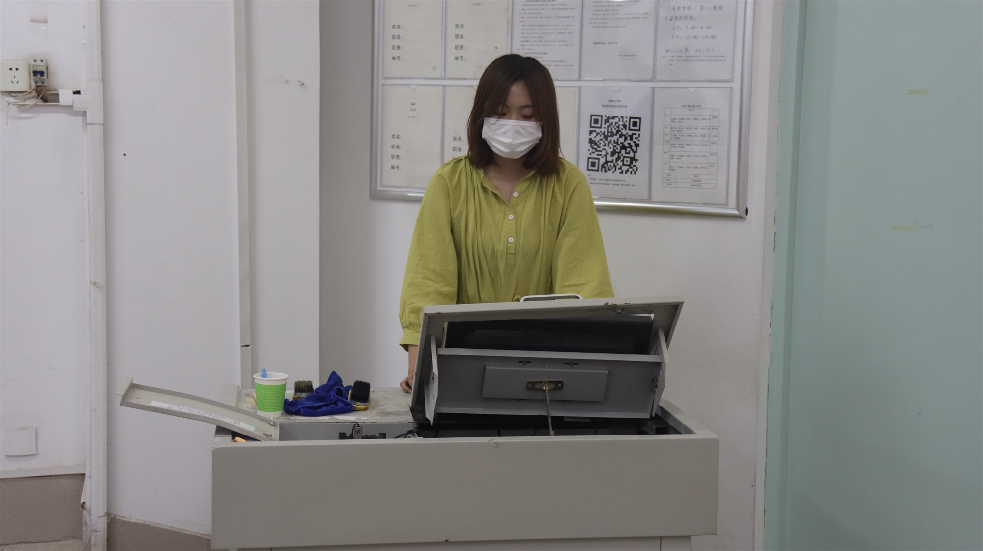 图2 5月27日,主持人张馨月同学讲解宿舍情况