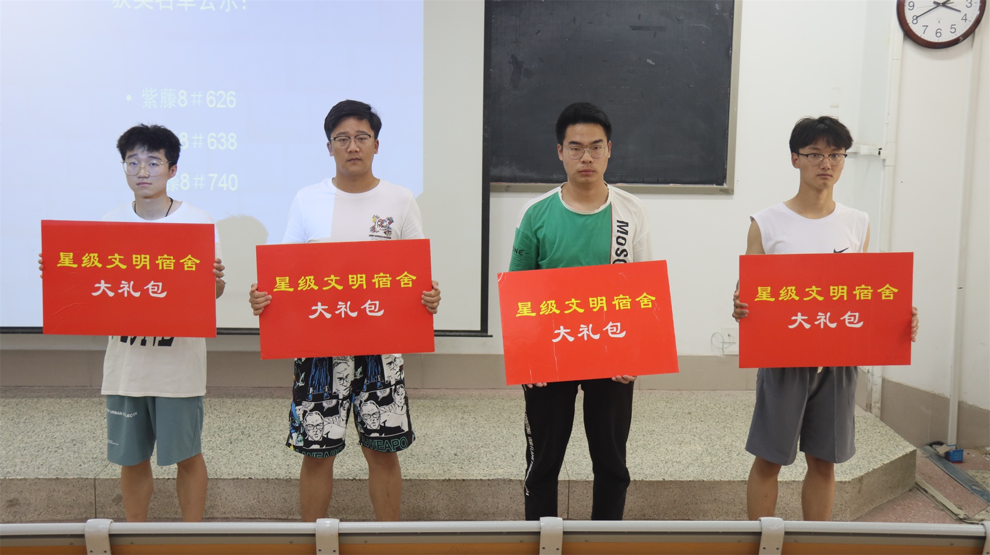 图3 5月27日,宿管部同学颁奖,各宿舍代表分组上台合影留念