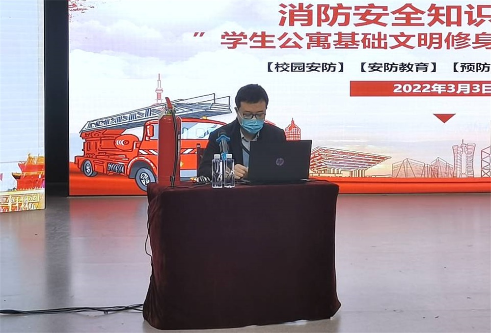 联合东昌府区消防救援大队,于综合实验楼11楼演播厅举办了“学生公寓基础文明修身月”主题教育活动——消防安全知识大讲堂。