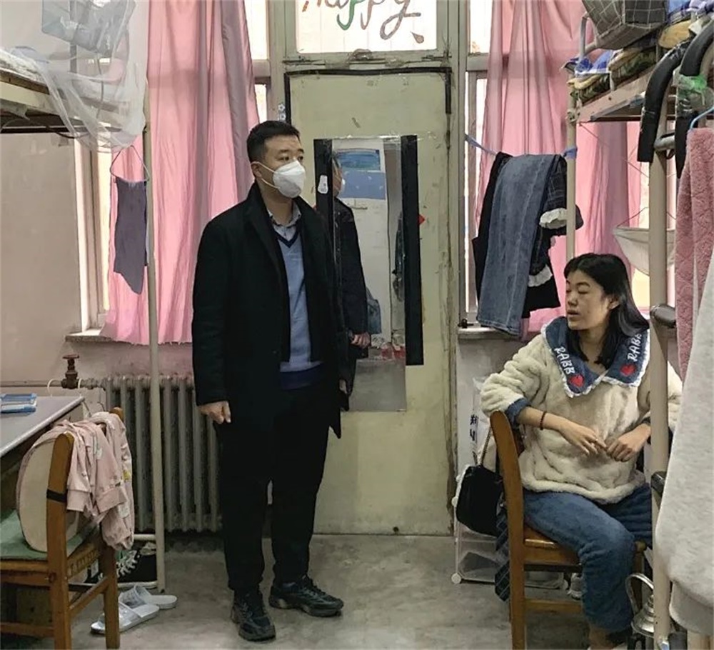 严防细守战疫情,群力担当筑堡垒。疫情态势严峻,学院第一时间成立专项小组,在疫情期间对本硕学生宿舍进行走访慰问。赵勇对参与走访的辅导员做出强调,他提到,开展学生公寓实地走访和切实关怀是及时了解同学们思想状况和实际需要的重要举措,应切实解决学生所需并进一步宣传和讲解疫情防控知识。在走访中,赵勇、各年级辅导员与同学们进行亲切交流,叮嘱同学们要减少外出、佩戴口罩,严格遵守学校防疫管理规定,时刻做好防护,保持好寝室环境的干净整洁。