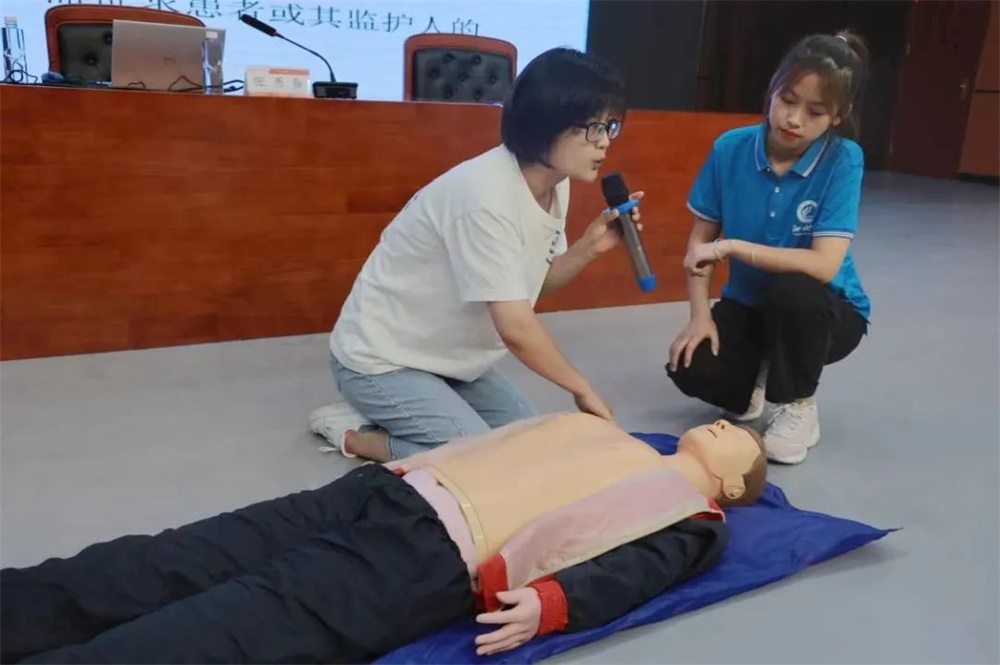 派出所警官邢艳蕾对同学们进行急救知识、出行安全等方面的培训。