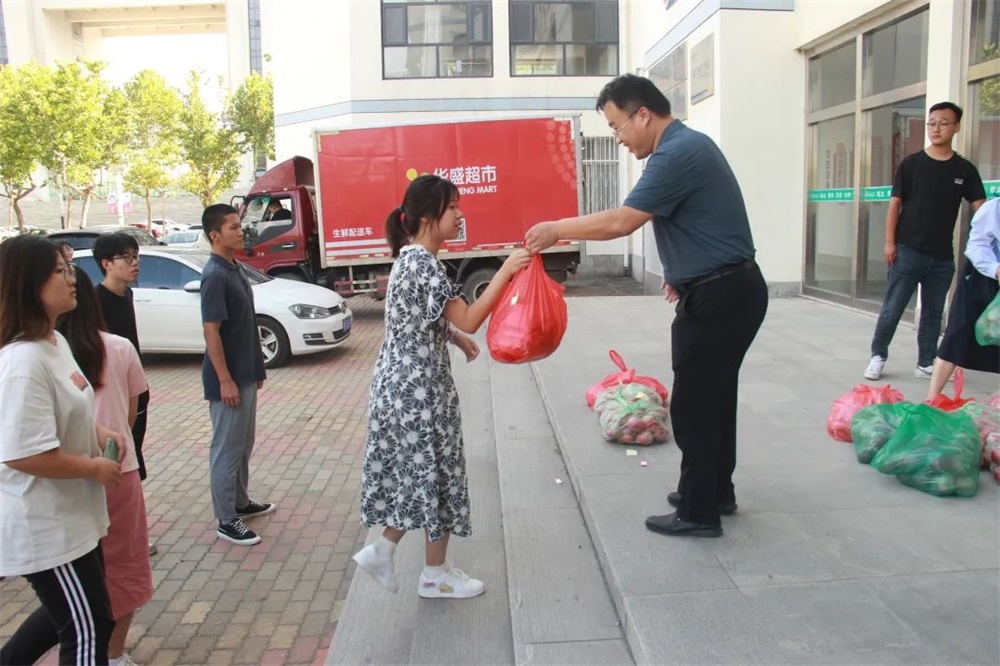 此次仪式以班级为单位进行发放,老师们将月饼和水果一对一发放到班级负责人手中,确保将每一份月饼、水果和祝福及时送到在校生手中。期间,老师们与同学们进行亲切问候与交谈,大致了解同学们节日期间的在校安排,同学们也纷纷表示在学校也依旧感受到了节日浓郁的气氛和学院给予的关怀和温暖。