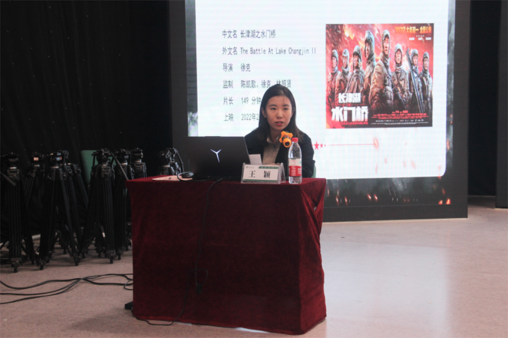 发扬抗美援朝精神,致敬保家卫国英雄。此次活动观看的《长津湖之水门桥》是改编自真实历史事件的历史战争题材类电影,该片以抗美援朝战争长津湖战役后期的水门桥战役为背景,讲述志愿军第七连战士们在结束了新兴里和下碣隅里的战斗之后,又接到要把准备撤退的美军阻挡在水门桥这一艰巨任务的故事。观影开始前,主讲教师王颖从电影的叙事艺术手法出发,阐明电影以宏大叙事的小切口为叙事理念,以小见大、以点带面,真实再现了艰苦卓绝的长津湖之战,向同学们传递了影片强烈的爱国主义精神。