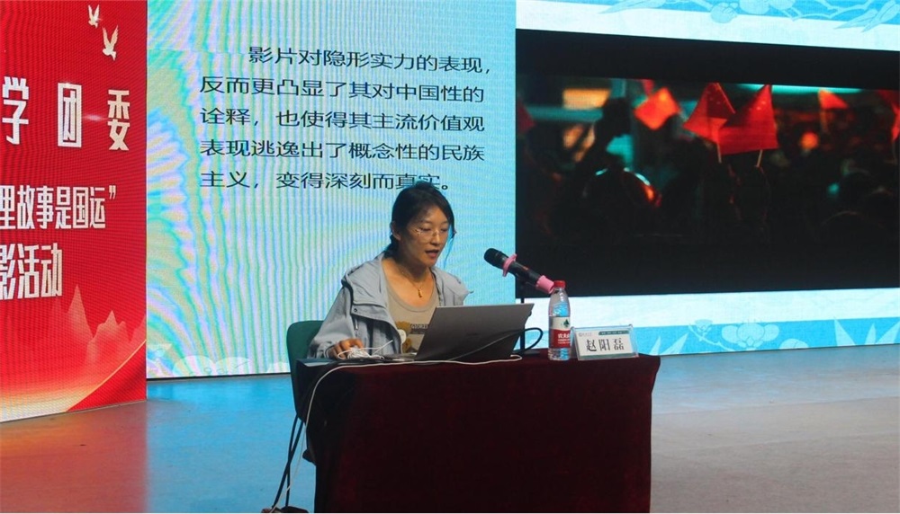 本次活动观看的电影为《万里归途》,影片讲述了外交官支援努米亚撤侨行动的故事。影片开始前,赵阳磊对电影做了简要介绍,她着重剖析影片所蕴含的精神内涵,并指明了该影片内容的表现方式为类型书写中的强叙事。她从专业角度出发,指出该电影深刻的中国性与叙事性使电影脱离了宏大空白的模板,让观众产生强烈共鸣。