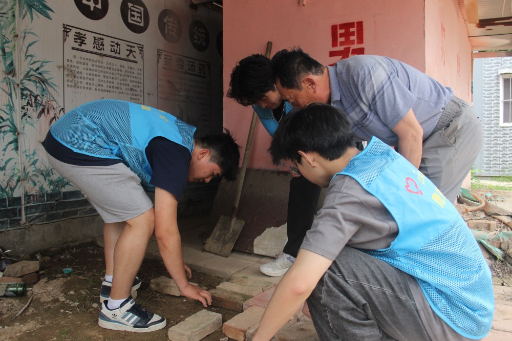 活动当天,志愿者们在敬老院工作人员简单分组与明确分工后,纷纷投入到自己的工作中去。女生负责敬老院庭院中杂草的拔除与清扫工作,以求为老人们营造一个干净、整洁又舒适的居住环境。男生则负责搬砖、铺路的工作,挑选砖块、铲平泥土、清扫碎石、补全缝隙,最后踩实压匀,高度的投入、百分百的认真与举手投足间的卖力获得了敬老院工作人员的高度赞扬,他们的付出为老人生活的舒适度与安全性提供了极大的保障。