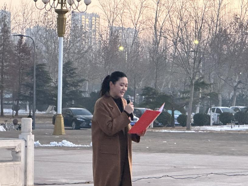 国旗护卫队入场迈着整齐的步伐走向升旗台。他们神情庄重,昂首挺胸,展现了聊大学子积极昂扬的精神风貌。全场庄严肃立,在雄壮激昂的《义勇军进行曲》旋律中,鲜艳的五星红旗缓缓升起,全体师生面向国旗行注目礼。