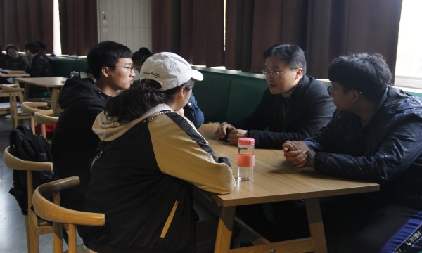 餐厅沙龙活动在温馨、和谐的气氛中正式开始,赵勇与同学们就大学生的大学学习规划和考研政策等方面内容展开谈话。他强调,大学生已经意识到考研的重要性,但大多数学生并没有落实到实际行动上,在座的同学们应积极参加到学院的社会实践和科技创新类活动中,为以后踏入社会及考研打好基础。赵勇强调,要把学习放到首位,一定要较早的把毕业规划做好。随后,同学们向赵勇老师提出自己在学业上的问题,赵勇老师一一作出解答,他强调,教育技术专业14级考生的考研率位居全校第一,同学们一定要树立高度的自信,通过考研争取更大的机遇,上升到更大的平台发展自己,要树立明确的目标,并努力奋斗。最后,赵勇给予同学们殷切的期望和关怀,盼望同学们学业有成。