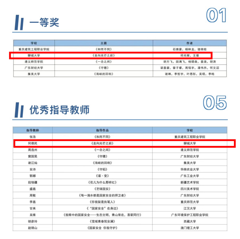 研究生邱光耀、王瑾同学创作的作品《走向光芒之前》从全国280余所高校、一千余件参赛作品中脱颖而出,荣获全国一等奖,指导老师何德民荣获优秀指导教师。此外,相关部门高度重视此次比赛,并发来感谢信,表示诚挚的祝贺和衷心的感谢。