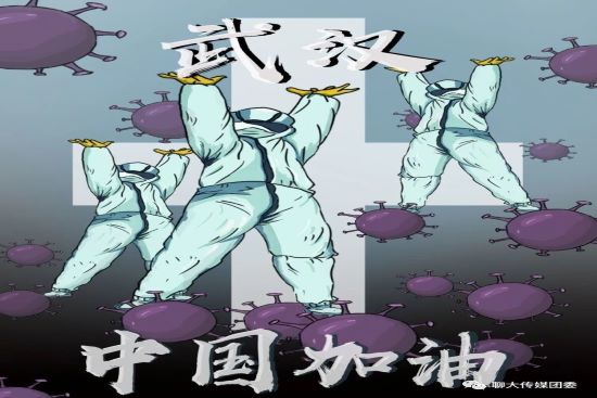 疫情当前,举国奋战。新型冠状病毒感染的肺炎疫情牵动着每一个中国人的心。天佑中华,共克时艰。为了向所有奋战在疫情一线的工作人员致以聊大学子的崇敬之情,为了向处于武汉等地的同胞送上最诚挚的祝福,也为了动员全体学生全力做好疫情防控工作,传媒学子积极参与“青春战‘疫’,我们在一起”主题创作活动,为武汉加油,为中国加油!万众一心,众志成城。我们虽未身处疫情第一线,但是也可以通过我们的作品为武汉、为中国摇旗呐喊!