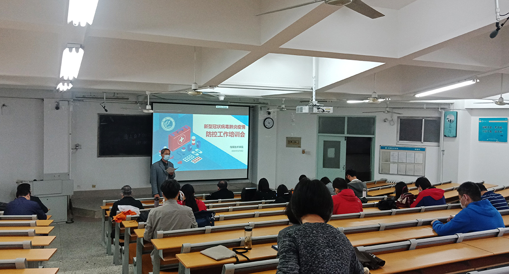新型冠状病毒肺炎疫情防控工作教职工集中培训会在11号教学楼A404教室举行。培训会由学院院长李焕芹主持。学院全体教职工除个别因上课请假外全部参加了会议。会议过程中,所有人员均佩戴口罩,间隔距离就坐。