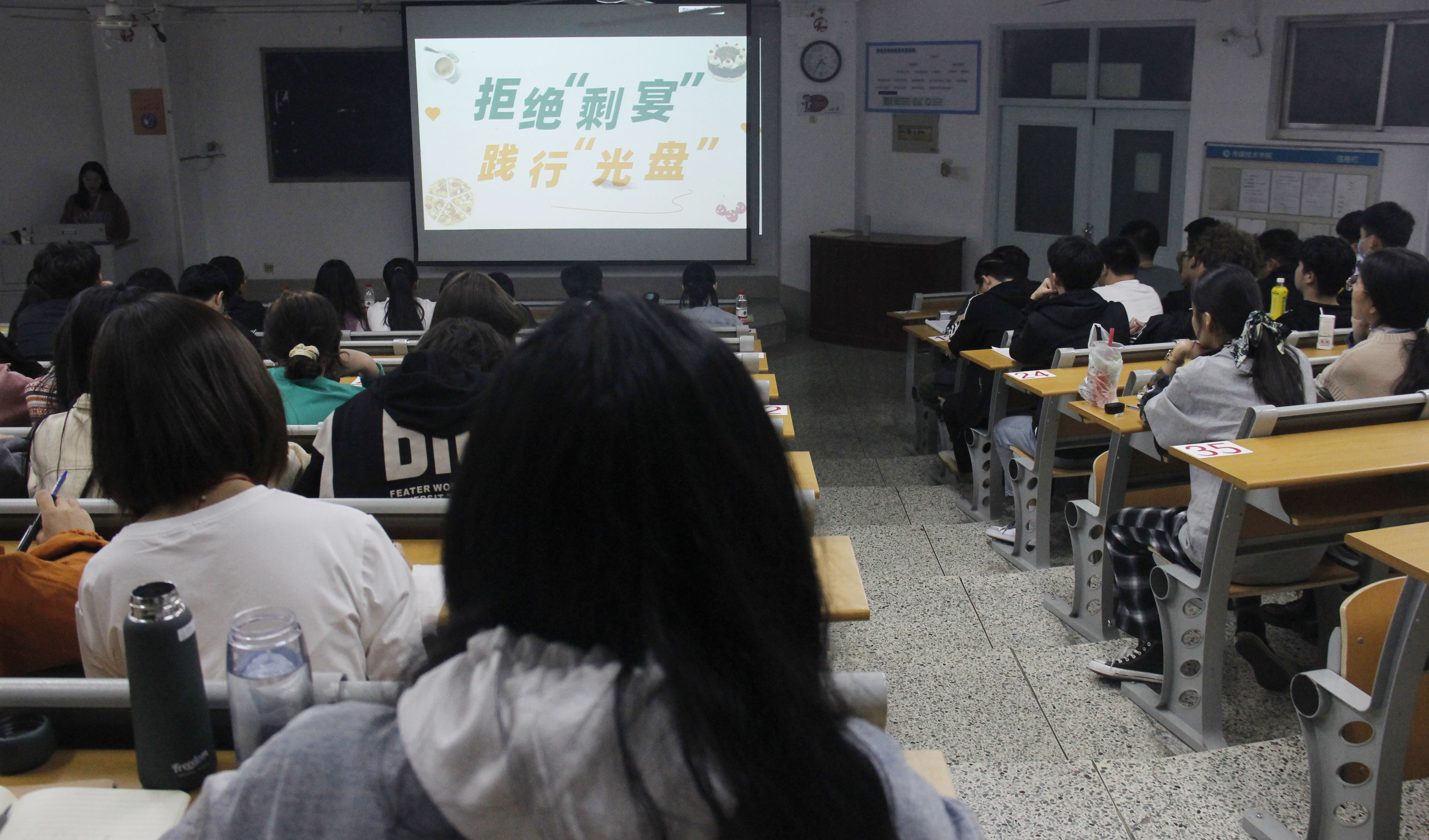 活动由迟雪婷担任主讲人,以“光盘行动”为切入点,在各个2020级学生班级进行了倡行节约主题宣讲。在宣讲过程中,主讲人迟雪婷通过分析世界粮食的地区分配和饥荒地区的数量,宏观向同学们展示了现在依旧严重的世界粮食问题,告诉同学们“一粥一饭,当思来处不易;半丝半缕,恒念物力维艰”的道理。同时以世界“杂交水稻之父”袁隆平的讲话视频和非洲贫困地区的照片,向同学们说明现实生活中践行节约的重要性和紧迫性。随后,主讲人向同学们发出加入“光盘行动”的邀请,并为同学们在日常生活中践行节约提出两个行动建议:一是养成良好的饮食习惯,从身边小事做起,减少食物的浪费;二是发挥创新力量,展现专业风采、运用自身特长进行表达和创作,为“光盘行动”的发展注入新的动力。宣讲结束后,同学们踊跃报名参与此次“光盘行动”,并纷纷表示,从此次宣讲中对粮食浪费问题有了进一步的了解,愿意积极响应制止餐饮浪费行为的号召,在日常生活中把节约意识转化为节约行动,做节约粮食的传播者、践行者。