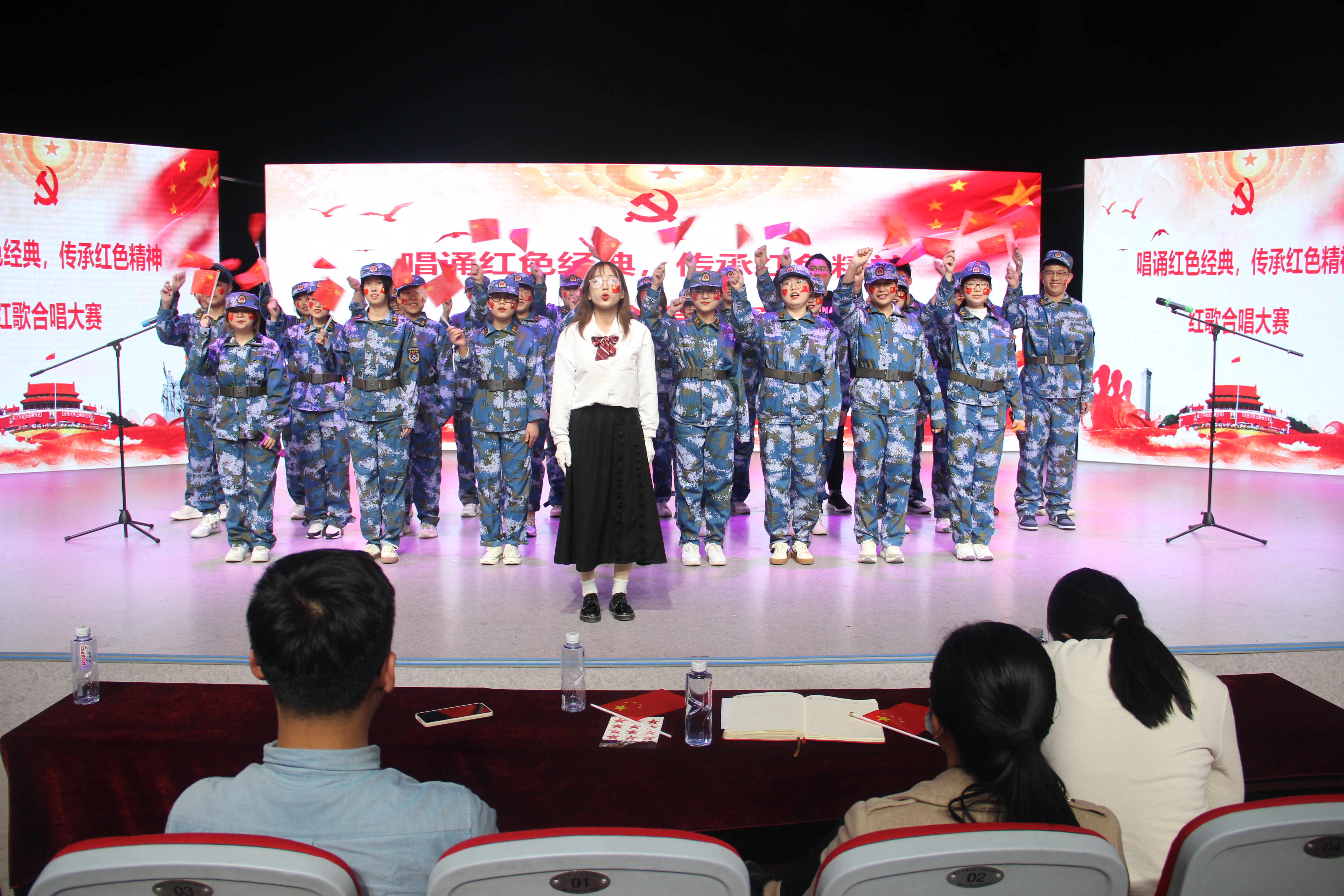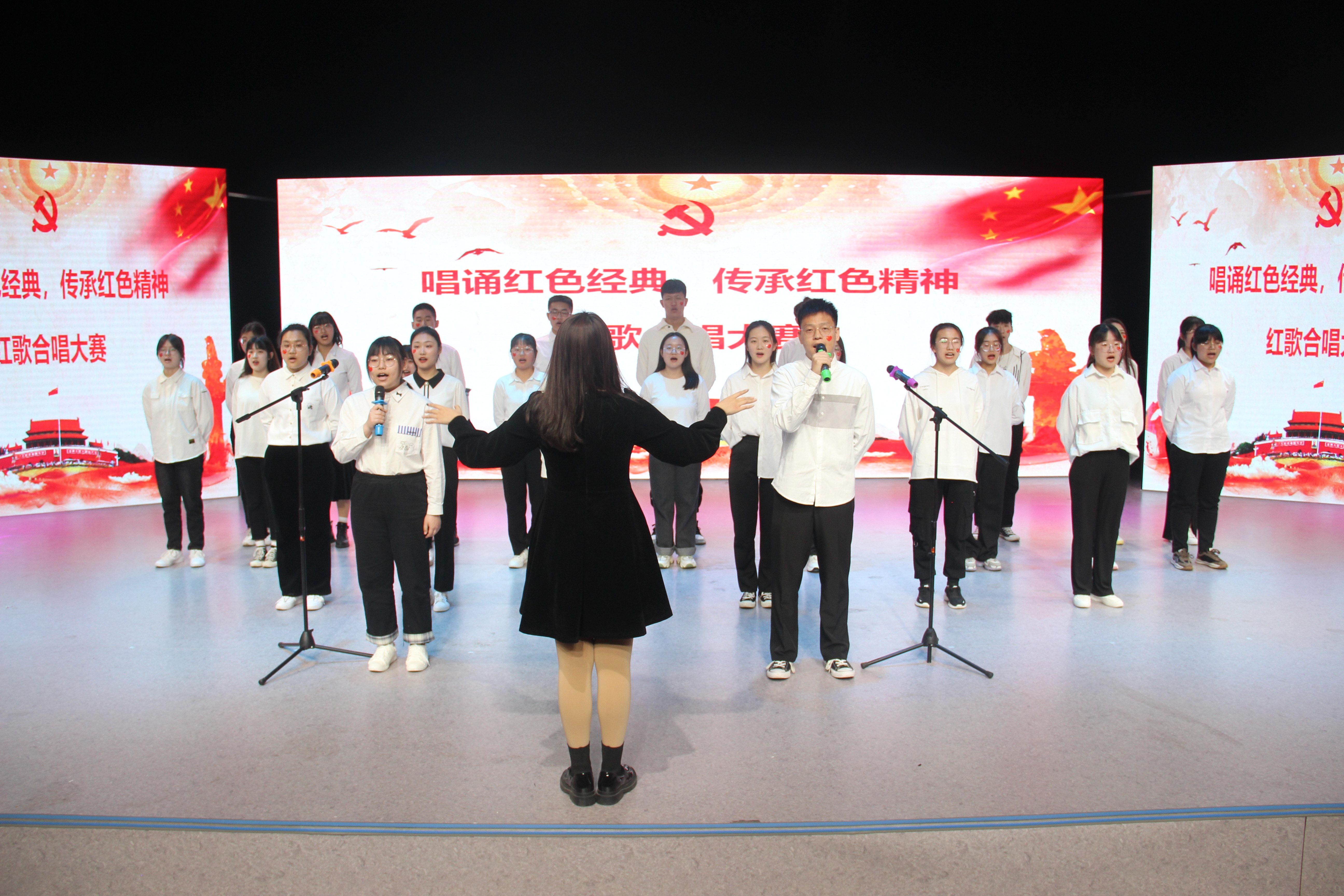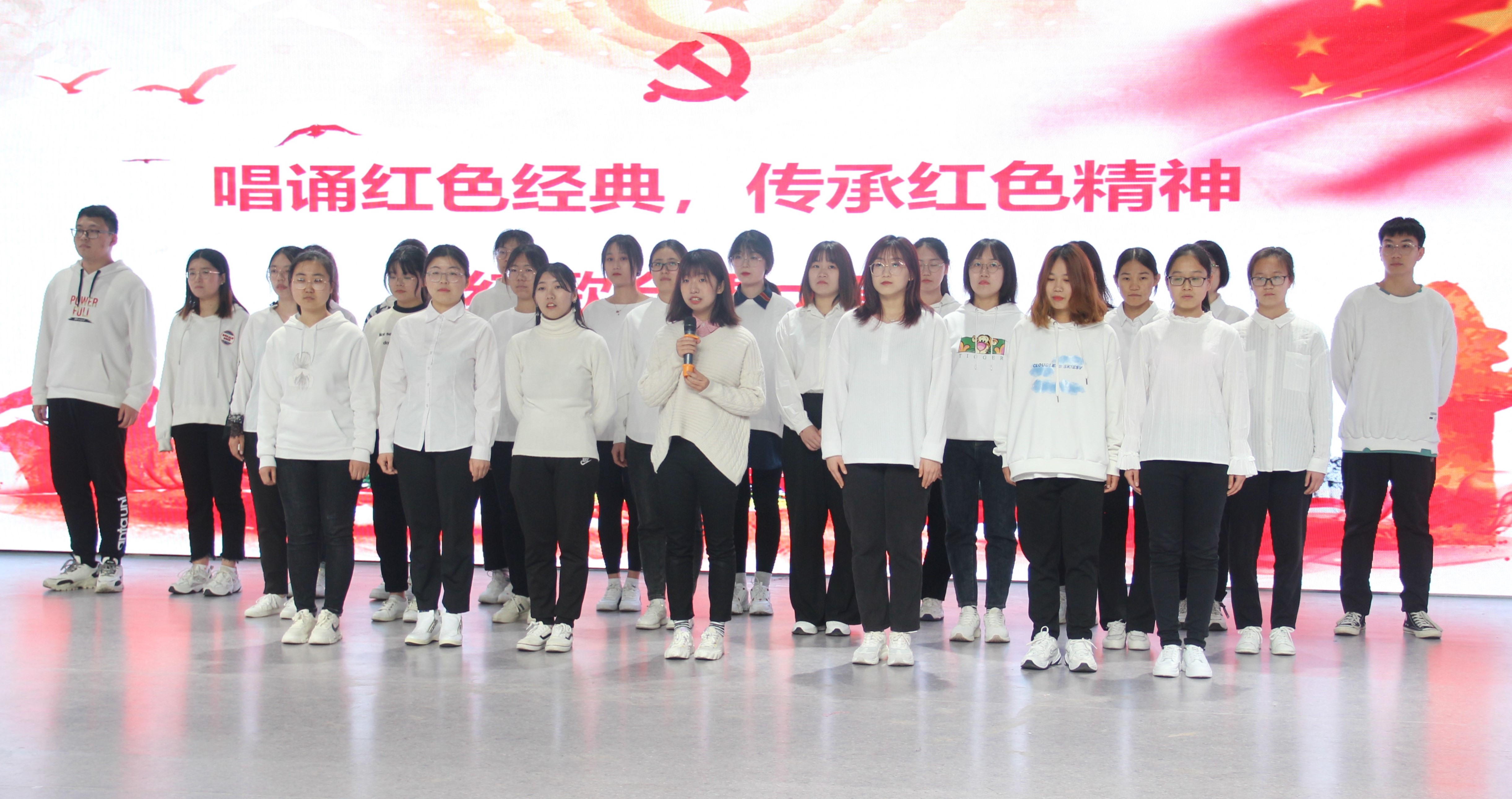 于综合实验楼11楼演播厅举办“唱诵红色经典,传承红色精神”红歌合唱大赛。